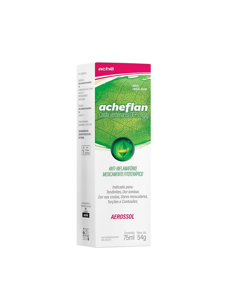 Saúde e Bem EstarFitoterápicos e HomeopáticosDor e InflamaçãoAcheflan Cordia Verbenacea Dc 5mg/g Aerossol 75ml