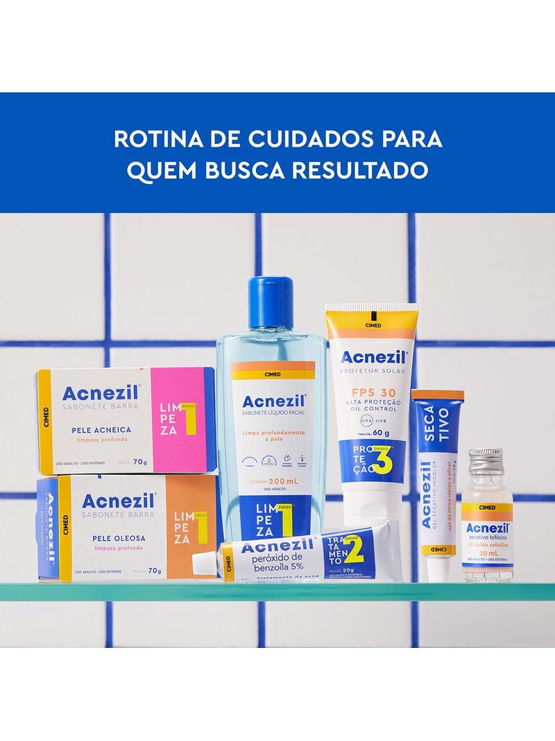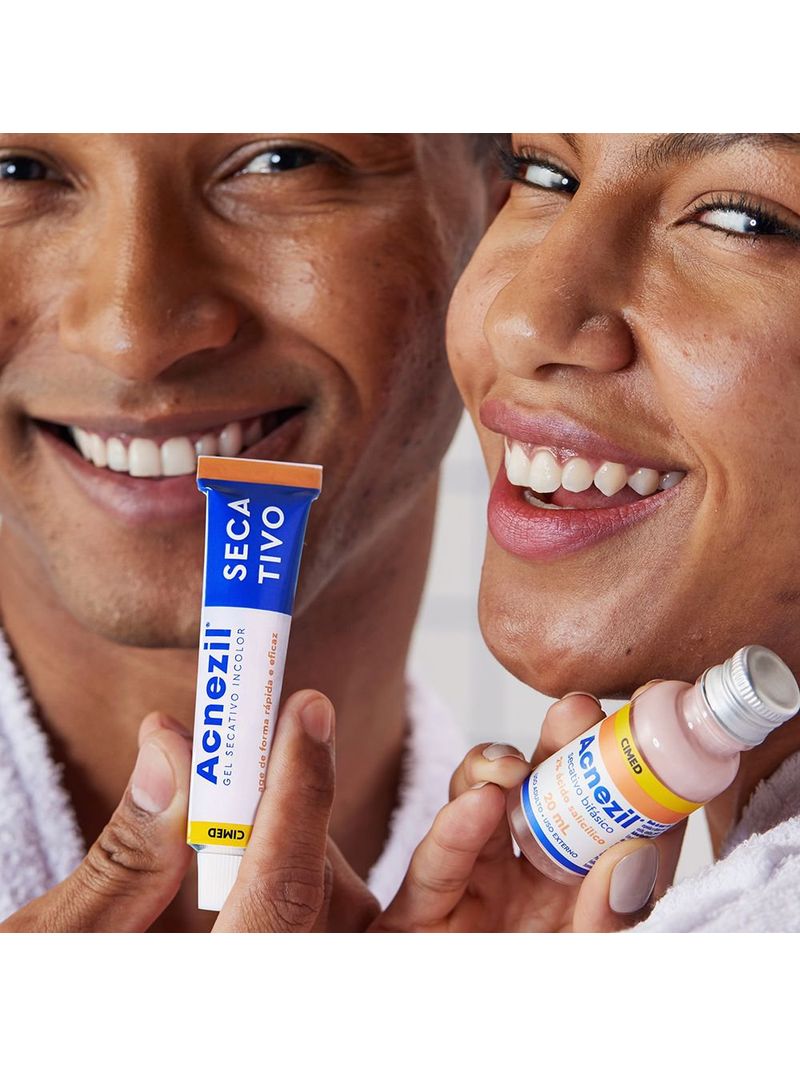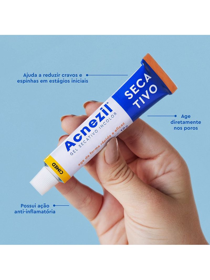 O Gel Secativo Acnezil age diretamente nos poros, tratando as espinhas nos estágios iniciais e agindo de forma rápida.