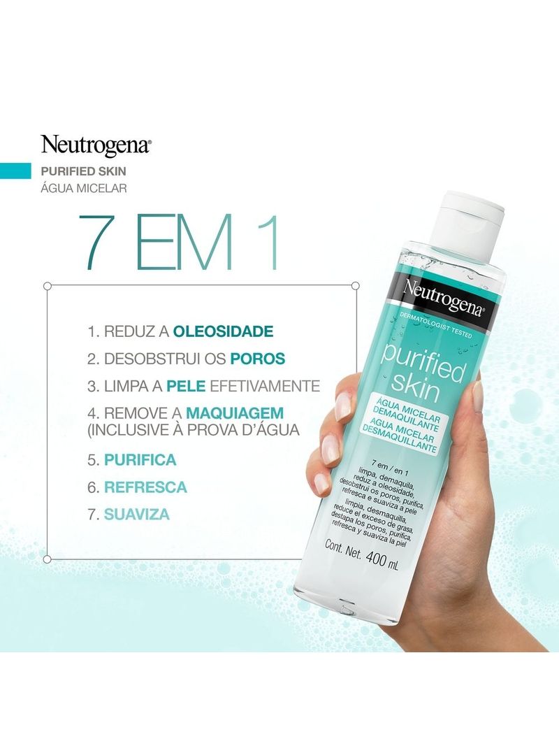 7 benefícios em 1 só produto: limpa a pele efetivamente; remove a maquiagem, inclusive à prova dágua; reduz a oleosidade da pele; desobstrui os poros; purifica; refresca e suaviza. Sua fórmula suave respeita o pH da pele e não danifica sua barreira natural.