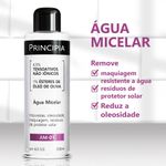 Água micelar com 4,5% de tensoativos não iônicos e 1% de ésteres de óleo de oliva com alta eficácia na remoção de impurezas, maquiagem e resíduos de protetor solar e melhora da oleosidade.