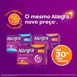 ALLEGRA (cloridrato de fexofenadina). Indicações: é um anti-histamínico destinado ao tratamento das manifestações alérgicas, tais como sintomas de rinite alérgica (incluindo espirros, obstrução nasal, prurido, coriza, conjuntivite alérgica) e urticária (erupção avermelhada e pruriginosa na pele). MS: 1.8620.0010. O USO DO MEDICAMENTO PODE TRAZER ALGUNS RISCOS. Leia atentamente a bula. SE PERSISTIREM OS SINTOMAS, O MÉDICO DEVERÁ SER CONSULTADO. 4M: MAT-BR-2403480. Agosto de 2024.