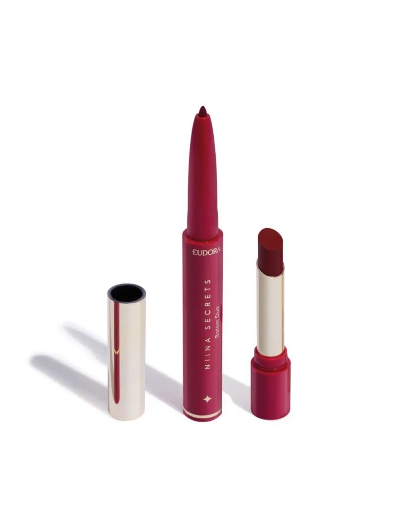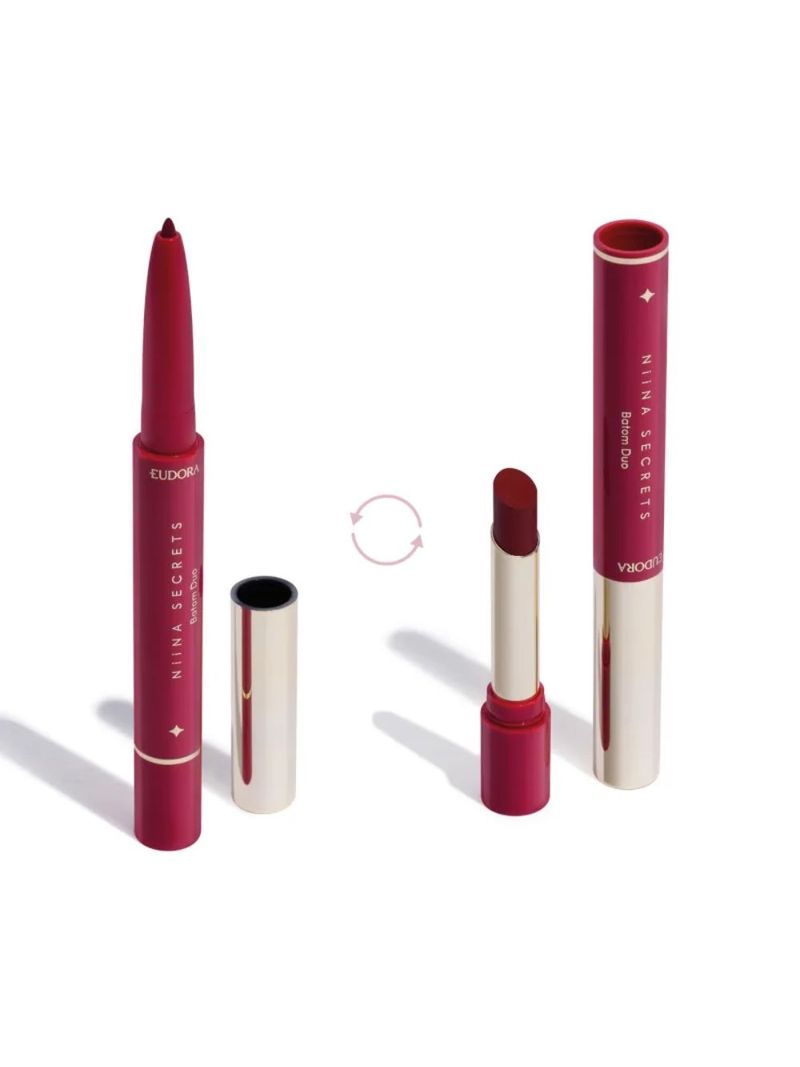 Batom Duo Perfect Match Niina Secrets traz o lapiseira delineadora para um contorno preciso e Batom Stick Ultracremoso para um preenchimento total da coloração dos lábios. Sinta a diferença de lábios realçados, com cor intensa.