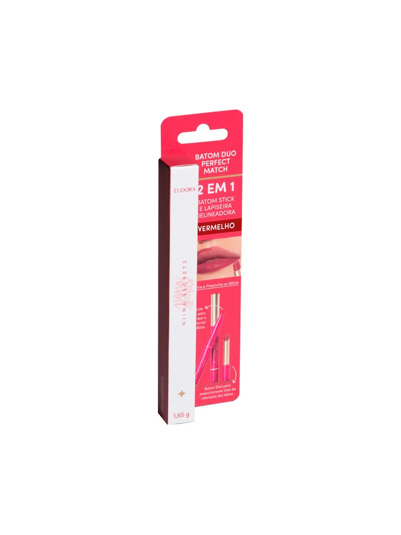O Batom Duo Perfect Match Vermelho Niina Secrets é o seu aliado para lábios impecáveis em qualquer ocasião! Com ele, você conquista um visual poderoso com lábios delineados, preenchidos.