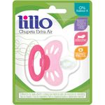 A Chupeta Lillo Extra Air possui o escudo côncavo, bordas arredondadas e furos de ventilação extra, com bulbo em formato ortodôntico e em silicone. Indicada para bebês acima de 6 meses.
