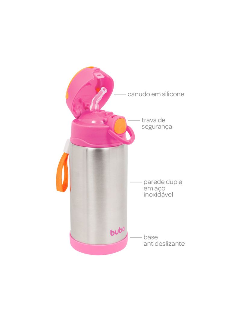 A Garrafa Térmica Inox Parede Dupla com Canudo da Buba é a companhia perfeita para passeios e viagens do bebê. Produzida em aço inoxidável com parede dupla, a Garrafa Térmica possui canudo em silicone macio, trava de segurança para tampa e base antideslizante. Higiênica, prática e resistente, ela conserva a temperatura da bebida por mais de 5 horas, sendo ela quente ou fria.