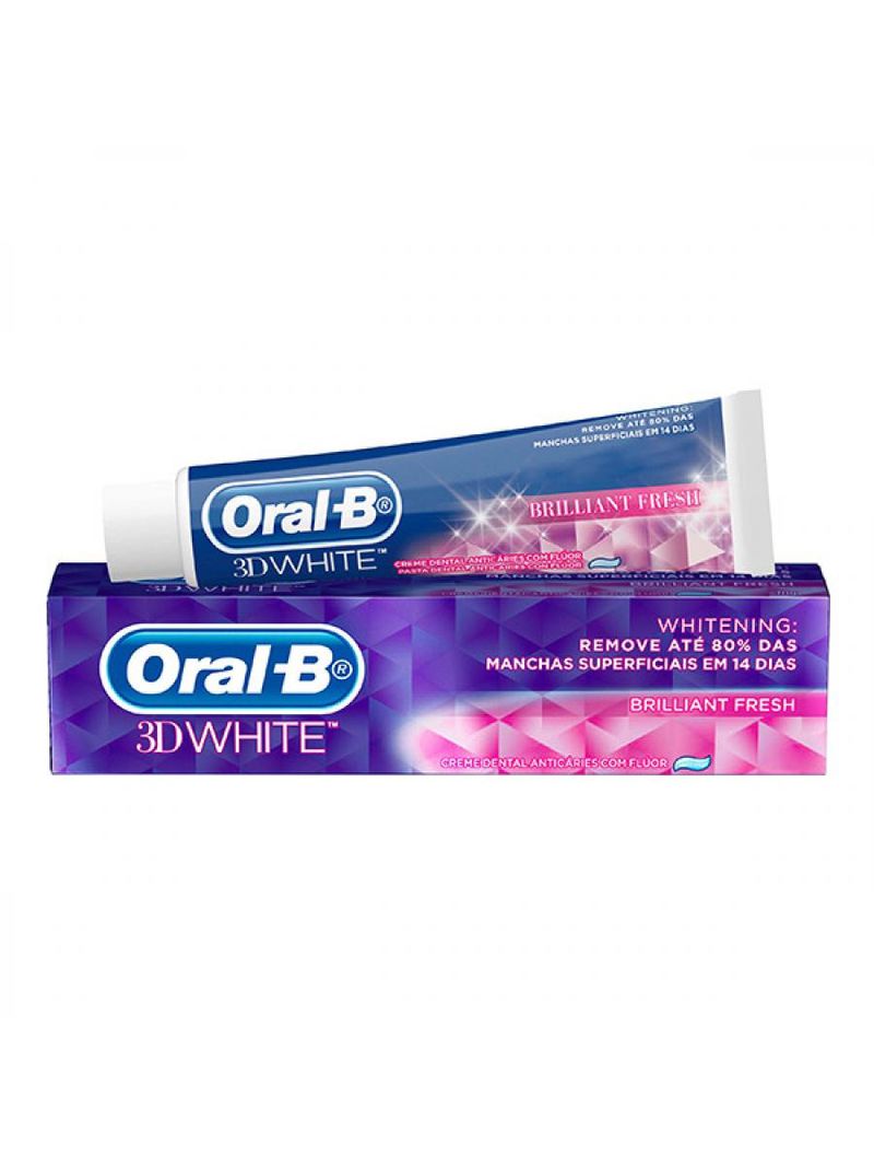 Oral-B 3D WHITE Brilliant Fresh branqueia os dentes: remove até 80% das manchas em apenas 2 semanas, e ajuda a obter uma brancura radiante.