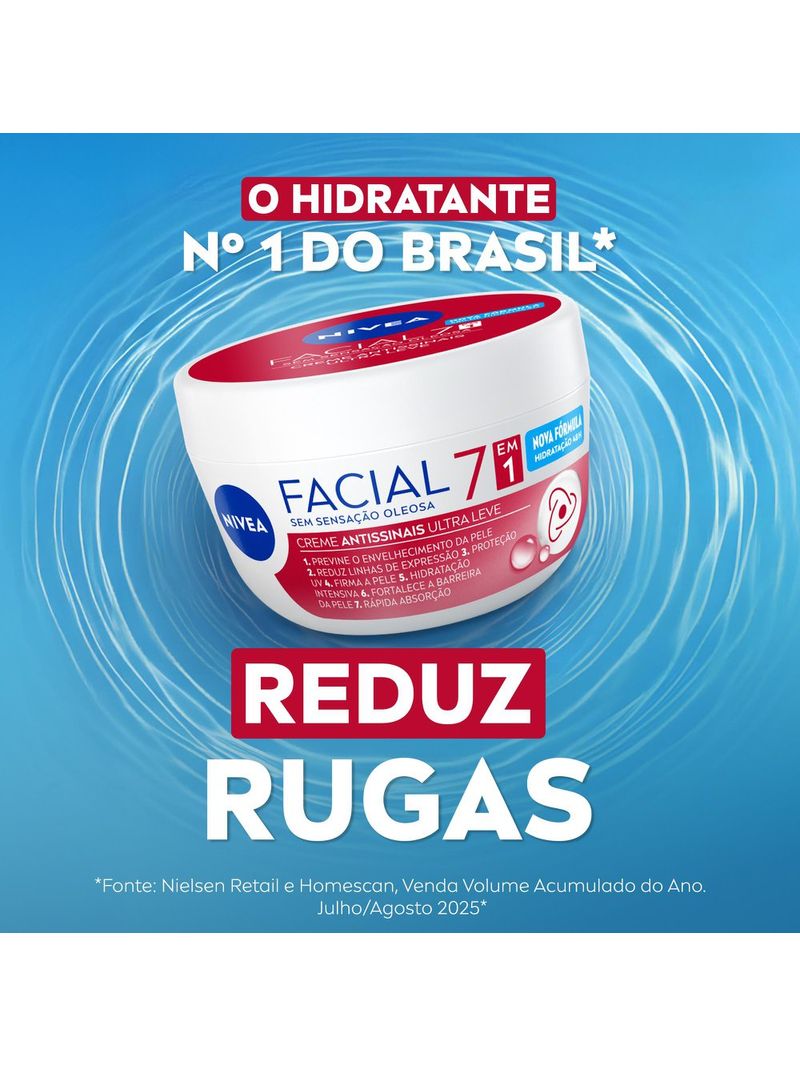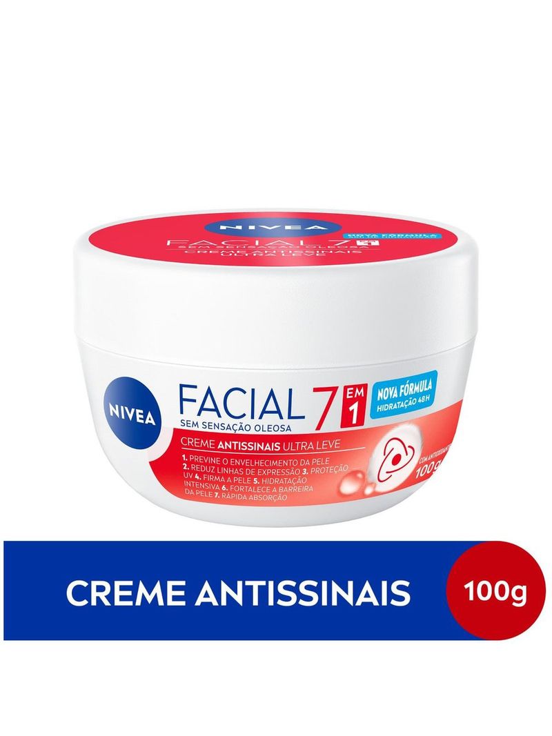 O Creme Facial Nivea Antissinais foi desenvolvido para todos os tipos de pele, proporciona uma pele firme além de reduzir as linhas de expressões.