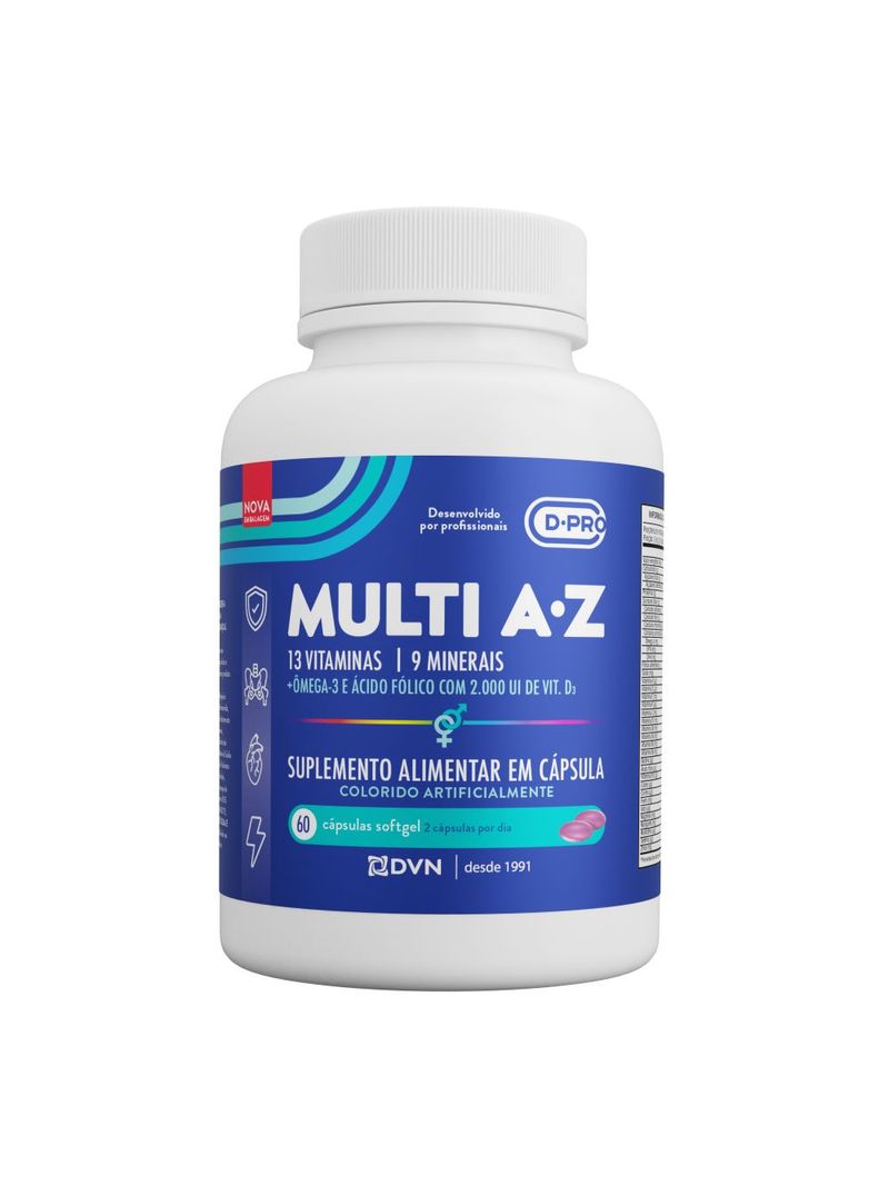 O único multivitamínico do mercado a garantir 2.000 UI de Vitamina D, o D.Multi A-Z é mais um produto da linha D.Pro. Com formulação desenvolvida para complementar os hábitos alimentares dos brasileiros, o D.Multi A-Z conta com 13 vitaminas, 9 minerais, além de Ômega-3. Tudo em apenas 2 cápsulas softgel, de fácil deglutição, para deixar seu dia dia mais completo.
