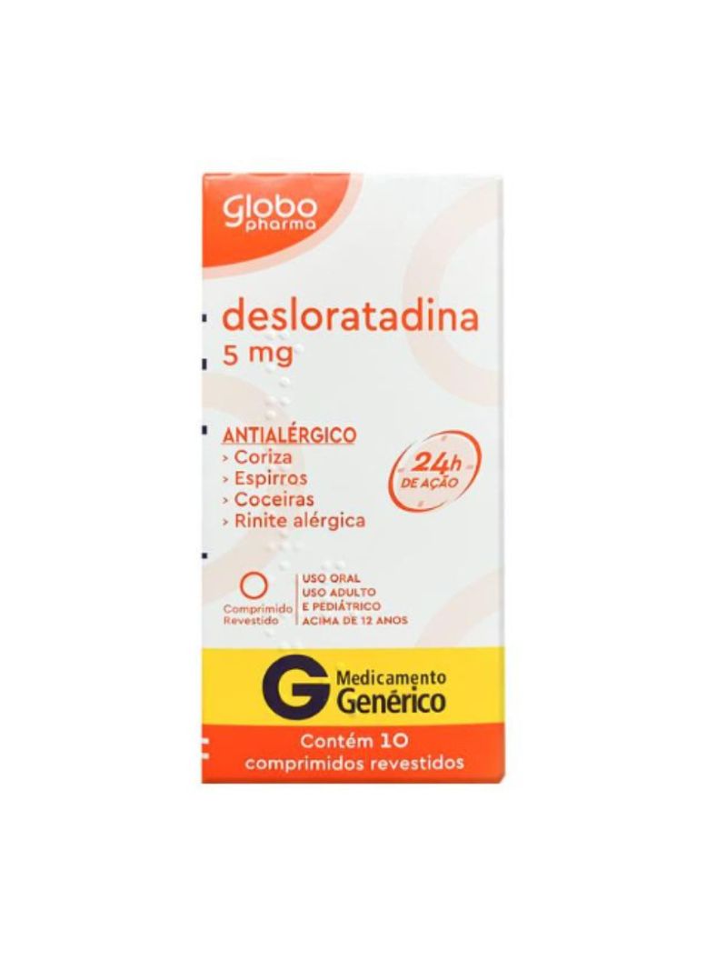 MedicamentosAlergiaDesloratadina 5mg Com 10 Comprimidos Revestidos Globo Pharma Generico