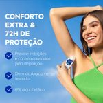 Garante proteção de até 72 horas contra o suor e mau odor, enquanto proporciona uma sensação de conforto extra. É ideal para quem tem pele sensível pós-depilação, pois sua fórmula suave ajuda a prevenir irritações e coceira nas axilas.