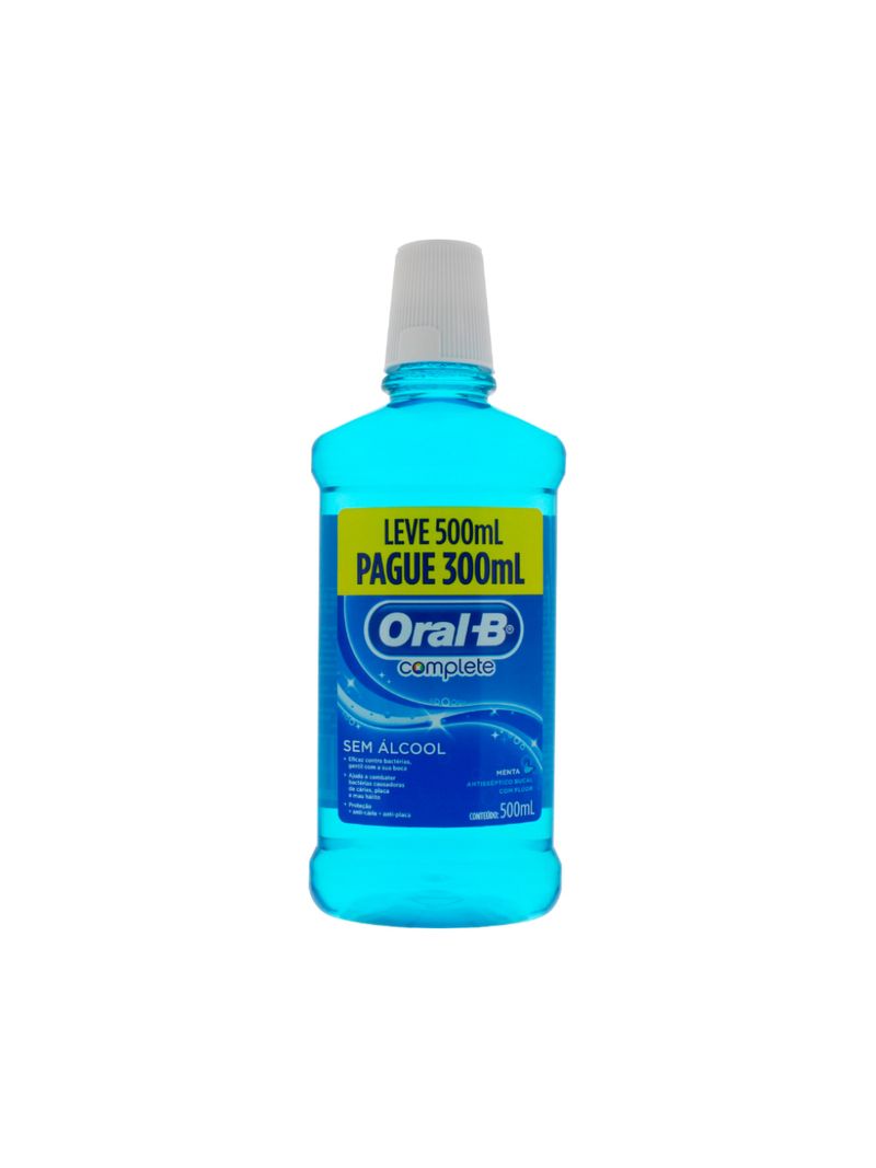 Enxaguante Bucal Antisséptico com Flúor Zero Álcool Menta Oral-B Complete Frasco Leve 500ml Pague 300ml.