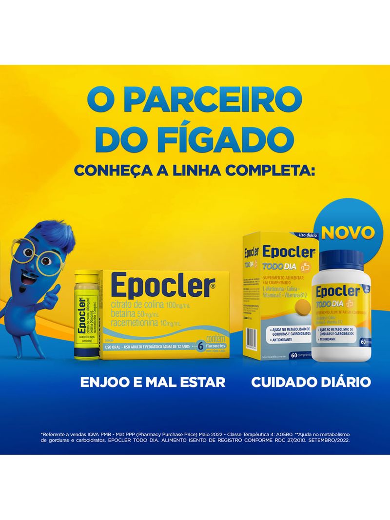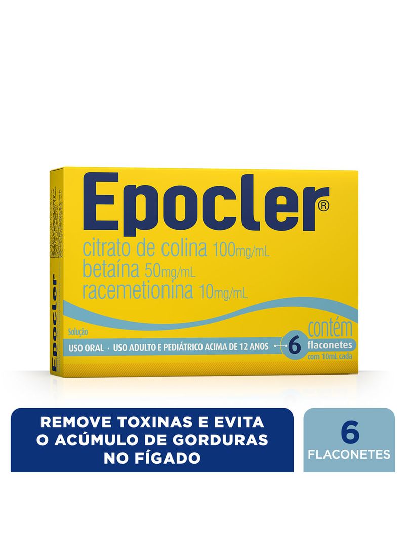 Epocler é um hepatoprotetor líquido que age principalmente sobre o fígado evitando o acúmulo de gordura nesse órgão e auxiliando na remoção de restos metabólicos e outras toxinas. Previne a infiltração (entrada) de gordura no fígado. Início de ação: cerca de 1 hora após a ingestão.
