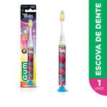 A Escova Dental Trolls da Gum possui luzes de Led que iluminam toda a escova e que piscam por 60 segundos