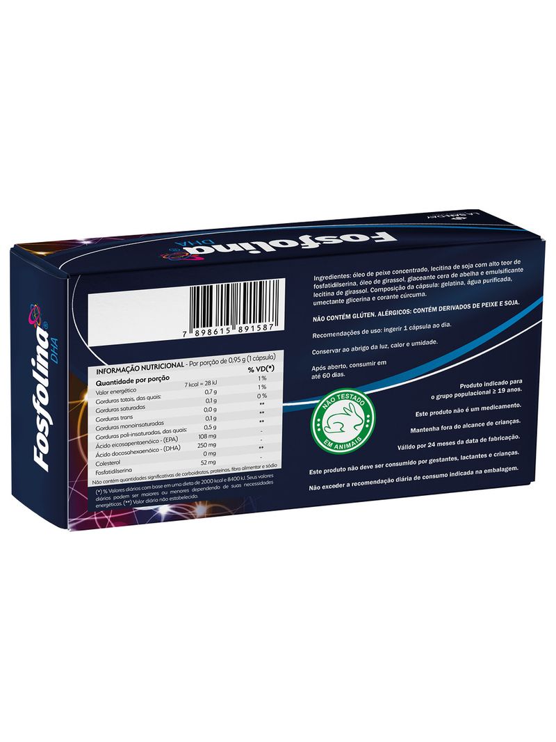 A fosfolina Dha é um suplemento alimentar a base de óleo de peixe concentrado e fosfatidilserina na forma de cápsulas. Estes componentes na sua composição são utilizados na prevenção do envelhecimento cerebral e distúrbios de memória.