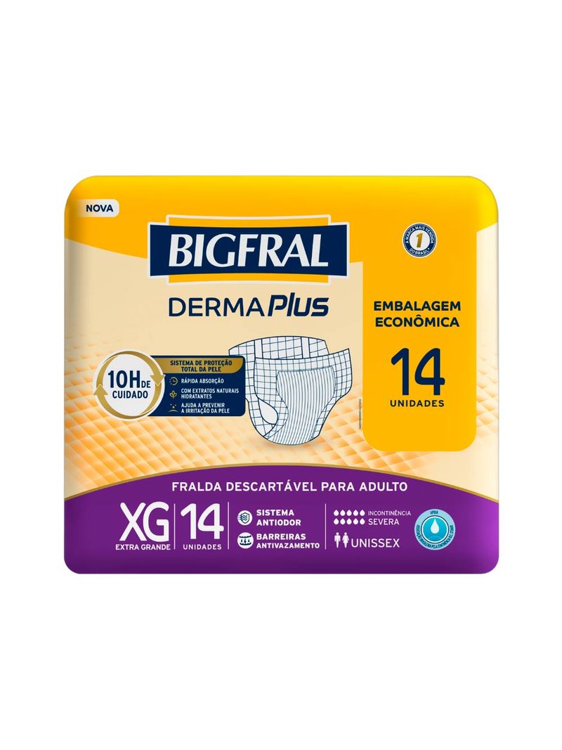 A Bigfral DermaPlus é a primeira fralda para adultos com extratos naturais hidratantes, que ajudam a previnir irritações, mantendo a pele protegida e saudável, além de garantir até 10h de cuidado para pessoas com incontinência urinária severa. O Sistema Antiodor neutraliza odores, trazendo a sensação de frescor da pele. PROTEÇÃO E CUIDADO SUPERIOR PARA SUA PELE.