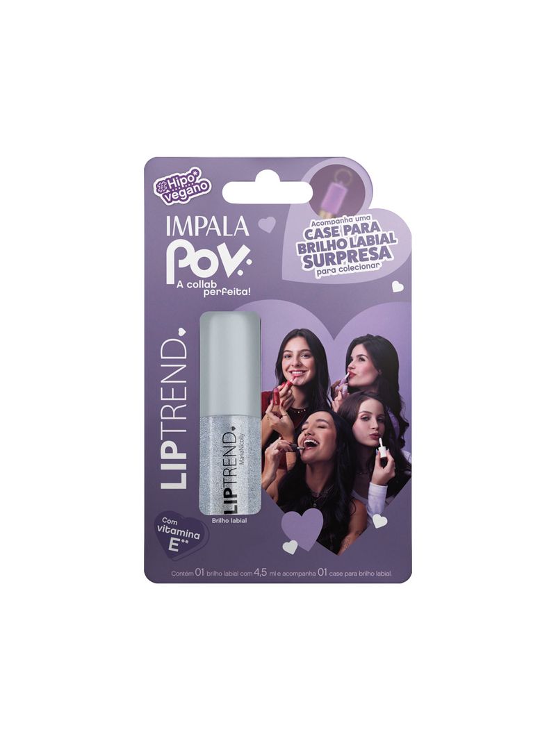 Um toque de brilho e um acessório para levar seu estilo para onde for. O kit traz 1 gloss labial Lip Trend, com acabamento translúcido, fórmula com Vitamina E e aquele brilho natural que valoriza os lábios, além de 1 chaveiro exclusivo da coleção POV, com design fashion e acabamento resistente. Ideal pra quem ama detalhes que fazem diferença. Produto hipoalergênico, dermatologicamente testado e não testada em animais.
