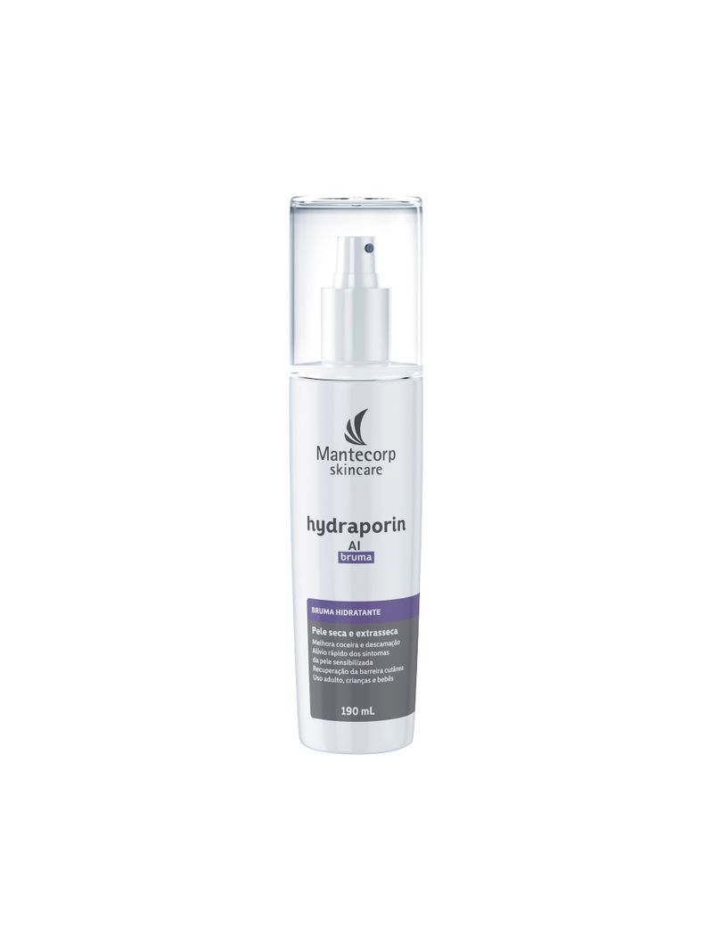 Hydraporin AI é uma bruma hidratante para uso corporal e facial em formato spray que combina ativos que acalmam a pele. Sua fórmula não contém fragrância, corante e parabenos, além de ser de Rápida absorção e indicada para uso adulto, em crianças e bebês (incluindo recém-nascidos).