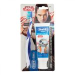 Desenvolvido para crianças acima de 8 anos de idade, o Kit Star Wars Oral B é composto por uma escova dental e um creme dental. A escova conta com cerdas que removem efetivamente a placa bacteriana de difícil acesso entre os dentes, além disso, seu limpador de língua remove as bactérias que causam o mau hálito. O creme dental possui fórmula suave em gel, fornecendo proteção eficaz.