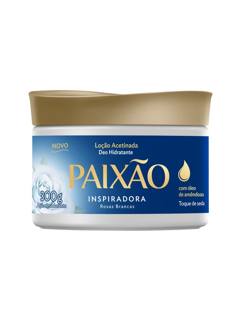 Loção Hidratante Paixão Acetinada Inspiradoras Rosas Brancas com ação desodorante, vai deixar a pele hidratada por 48 horas.