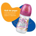 A Mamadeira Super Evolution Divertida Lillo foi especialmente projetada com o formato de frasco mais acinturado e fácil de pegar para auxiliar as crianças a segurar mamadeira. Recomendada para bebês maiores de 6 meses. Livre de Bisfenol-A.