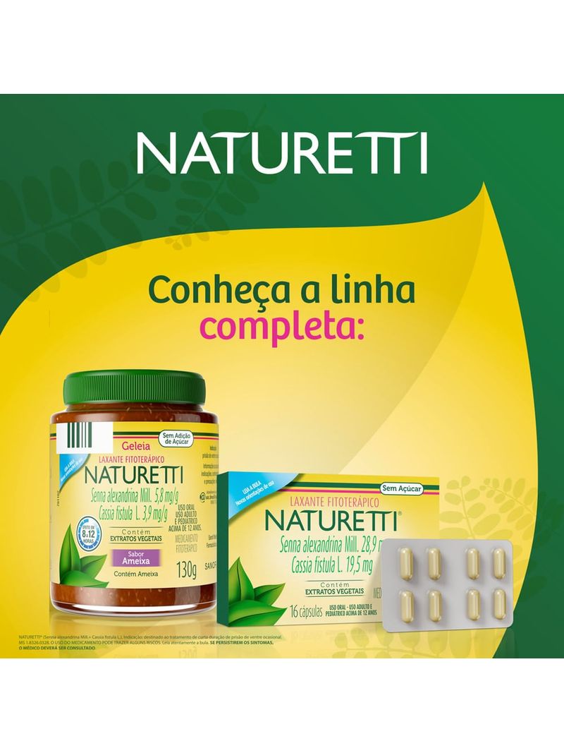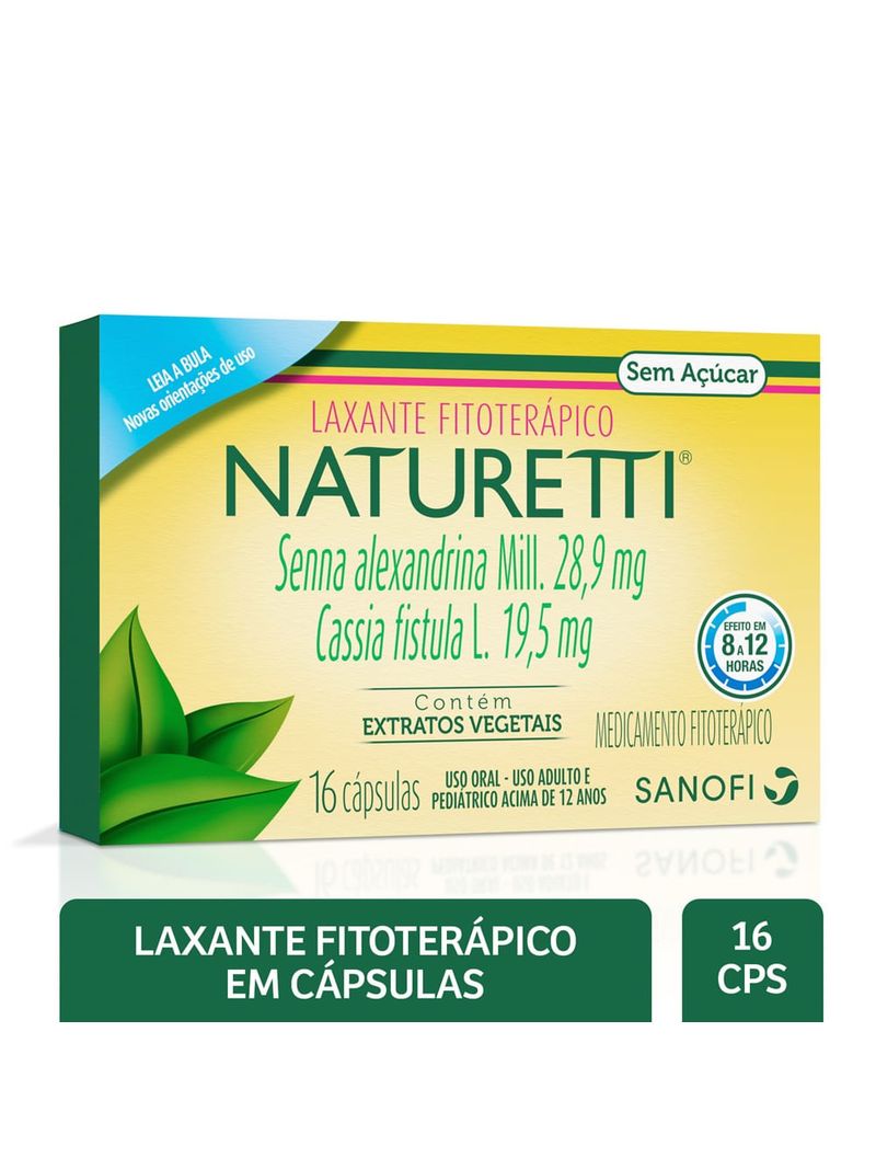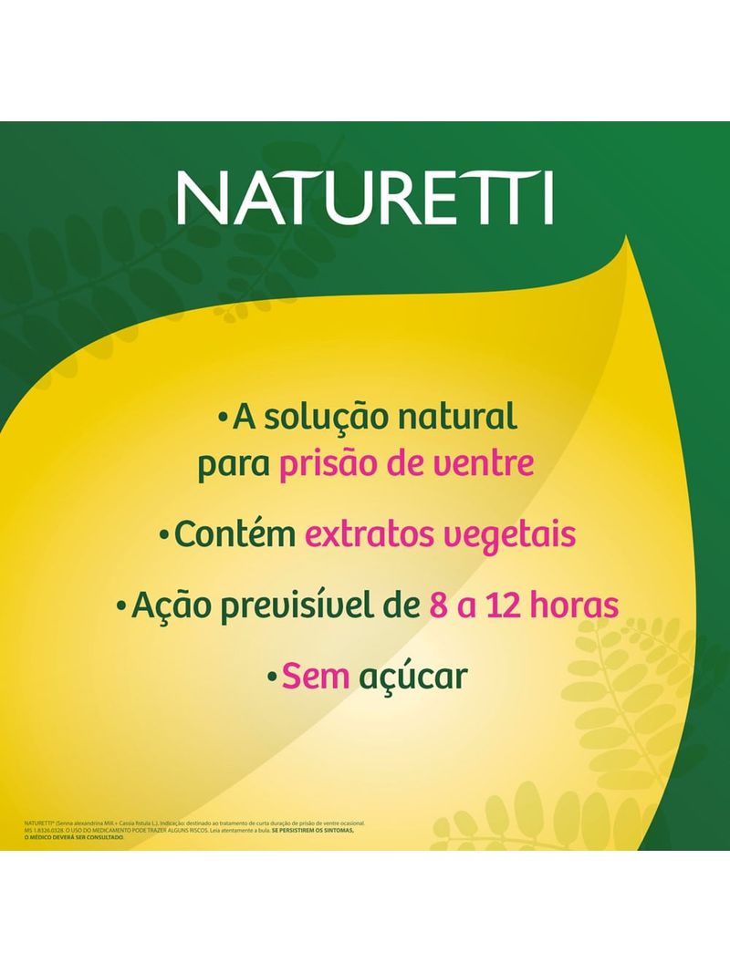 Naturetti é um medicamento fitoterápico indicado para o tratamento da prisão de ventre crônica ou momentânea devido a viagens, menstruação, dietas, cirurgias e alteração de hábitos alimentares. Naturetti combina a ação de princípios ativos vegetais que provocam estímulos no tubo digestivo auxiliando na regulação da função intestinal como laxativo, de maneira suave e gradual.