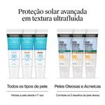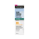 NEUTROGENA SUN FRESH@ Oil Control Fluido FPS 80 SEM COR: Indicado para peles oleosas e acneicas, possui textura ultrafluida e 12h de efeito matte, além de combater os cinco desafios da pele oleosa: controla o brilho, previne a acne, diminui os poros e ameniza as marcas de acne, além de hidratar sem pesar. Com a exclusiva tecnologia HELIOPLEX SL, oferece muito alta proteção, forma uma barreira protetora contra raios UV, ajuda a proteger contra a luz visível e poluição, protegendo a vitalidade da pele e reverte danos solares, entregando um boost de nutrição e vitaminas. Com Niacinamida: ativo clareador de sinais causados pelo sol; Vitaminas C e E: antioxidantes.
