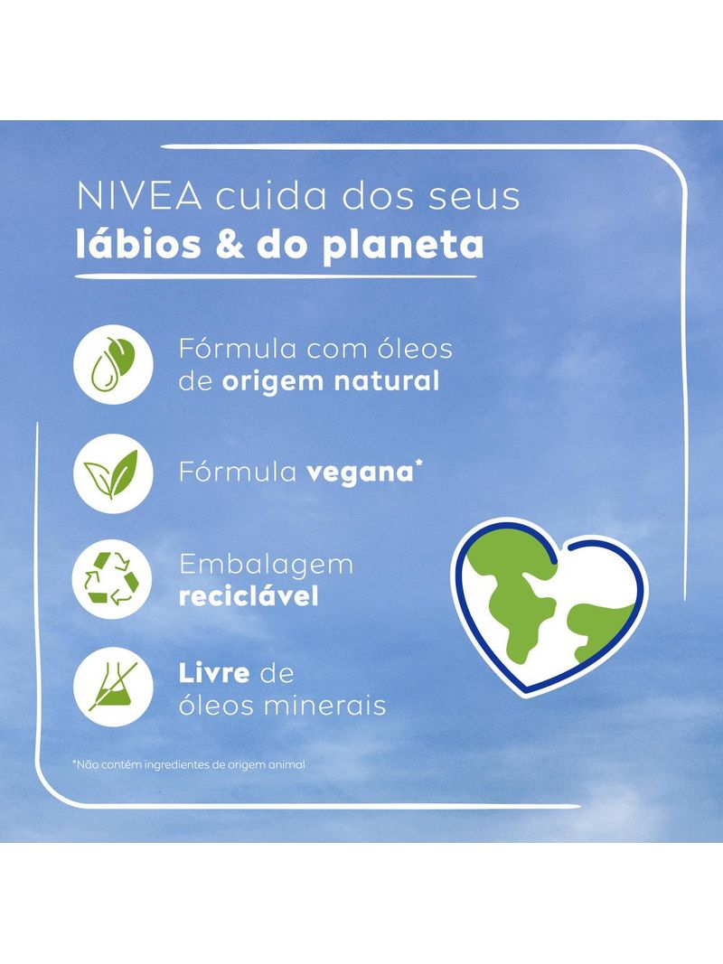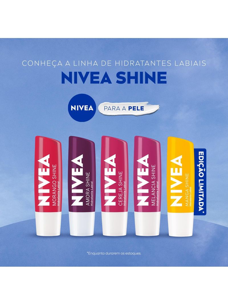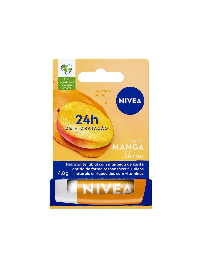 O Hidratante Labial Nivea Manga Shine é um protetor labial em edição limitada, que combina manteiga de karité e óleos de origem natural para proporcionar 24 horas de hidratação profunda. Além de cuidar intensamente dos lábios, oferece um brilho delicado e um aroma refrescante de manga, garantindo maciez e suavidade durante todo o dia.
