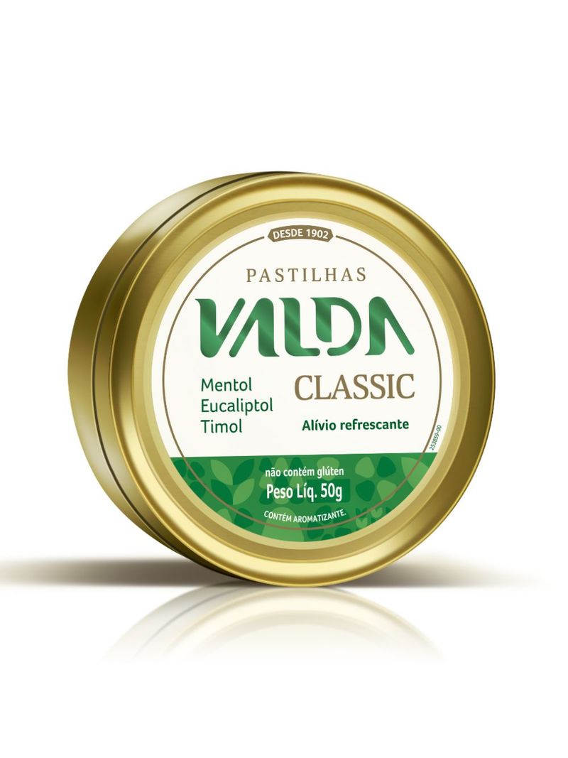 As Pastilhas Valda são a base de goma acácia com mentol, eucaliptol e timol, é indicada para o alívio da dor de garganta, tosse e hálito fresco.