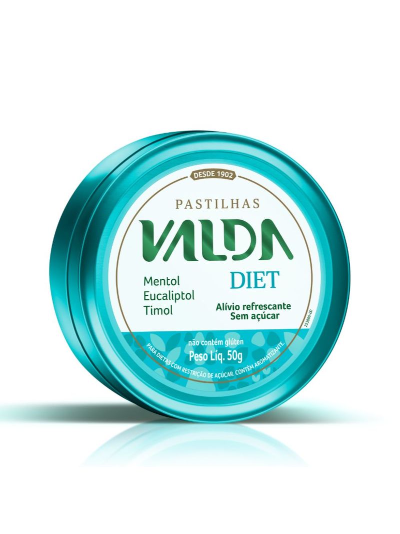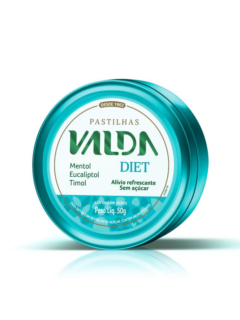 As Pastilhas Valda Diet são a base de goma acácia com mentol, eucaliptol, timol e zero açúcar, é indicada para o alívio dador de garganta, tosse e hálito fresco. Indicada para dietas com restrição de açúcar e diabéticos.