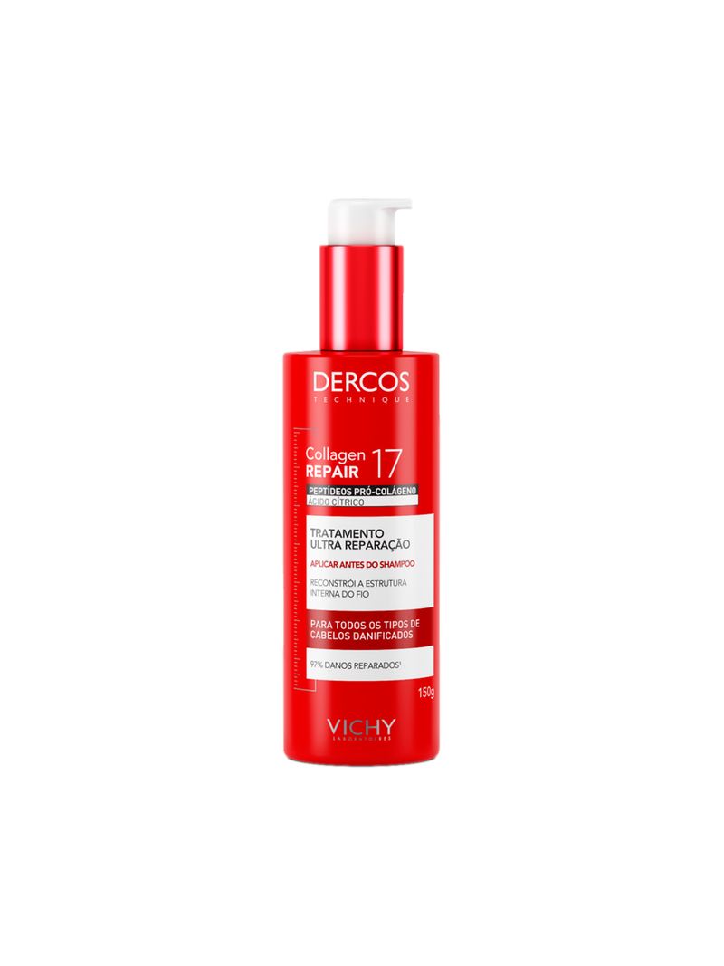 DESCOBERTA VICHY: O Colágeno 17 está naturalmente presente no couro cabeludo. Ele contribui para a espessura e a resistência da fibra. Quando o nível de Colágeno 17 diminui, os fios se tornam mais frágeis e quebram, caindo facilmente.