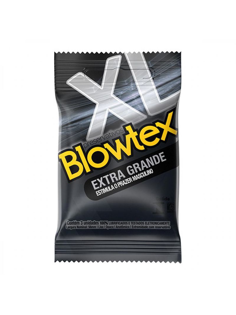 Blowtex Extra Grande possui 65mm de ponta e largura nominal de 56mm, para maior conforto durante a relação. Contém também texturas intercaladas para aumentar o prazer. É lubrificado.