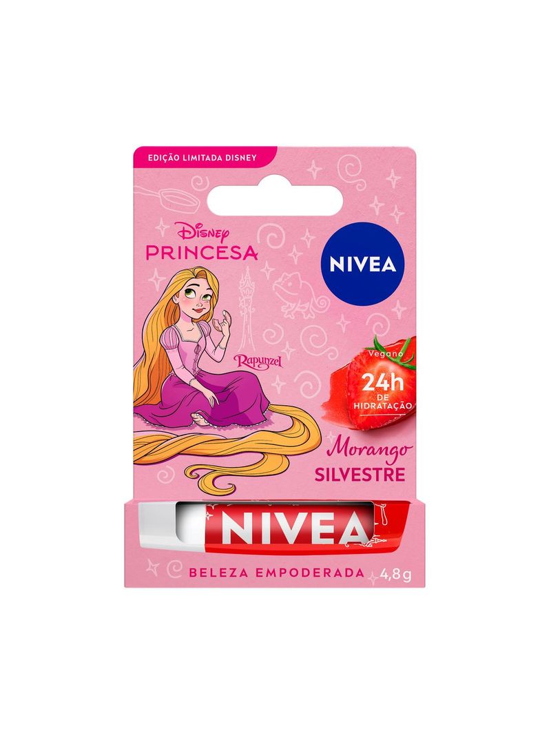 O Nivea Hidratante Labial Morango Silvestre Edição Limitada Rapunzel Disney, é um lip balm desenvolvido para proporcionar hidratação intensa e um toque de cor delicado aos lábios. Com embalagem exclusiva inspirada na Rapunzel, essa edição limitada combina cuidado e um toque mágico.