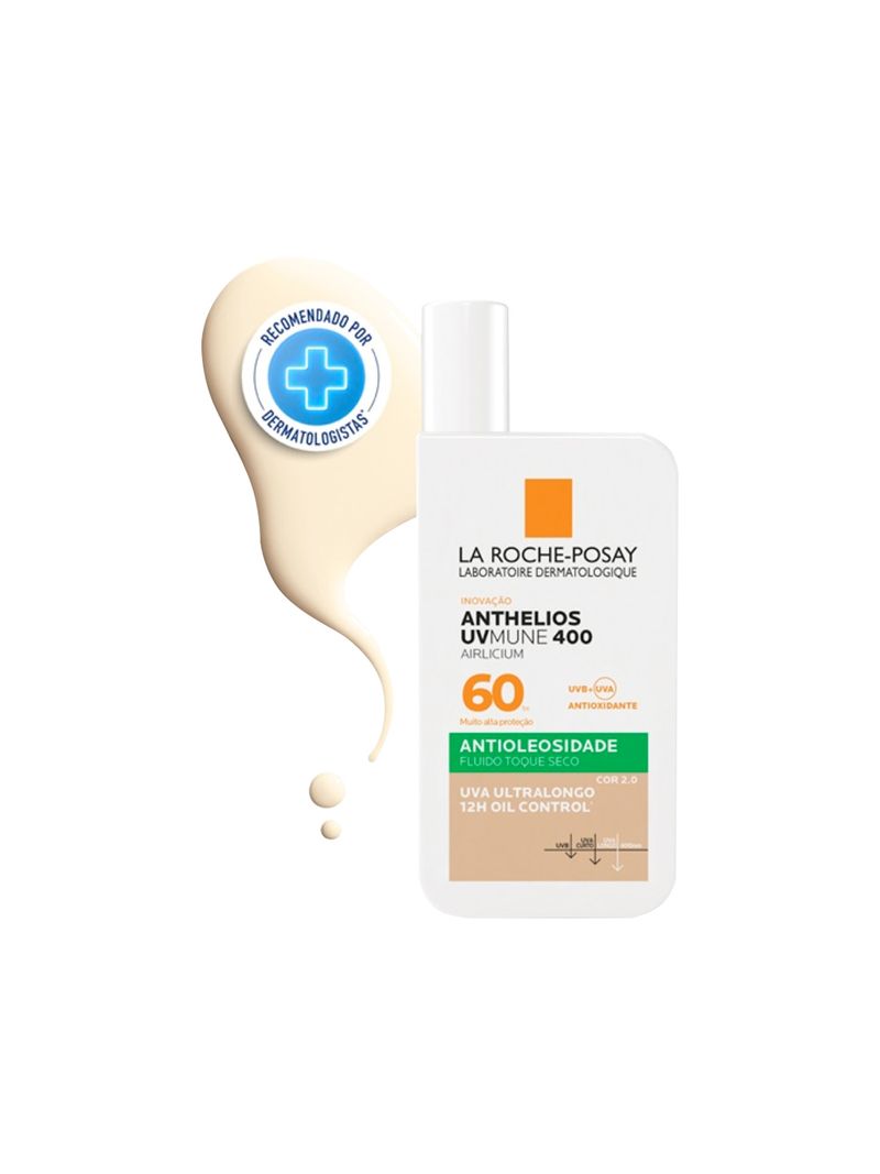 O melhor filtro solar contra os raios UV profundos agora com cobertura leve e disponĆvel em 3 cores! Descubra o novo Anthelios UVMune 400 Airlicium FPS60 com cor, nos tons 2.0, 4.0 e 6.0, uniformiza o tom da pele com uma textura leve e protege contra luz visĆvel, ideal para peles oleosas. Ele combina a revolucionĆ”ria tecnologia Mexoryl 400, Ćŗnico filtro UV que protege contra os raios UVA ultralongos¹ - aqueles que penetram mais profundamente na pele - com a exclusiva tecnologia antioleosidade airlicium. O resultado? Controle e redução da oleosidade, 12 horas de efeito matte e muito alta proteção solar FPS60. Sua fórmula completa oferece alta resistĆŖncia Ć Ć”gua, suor e areia, com uma textura ultrafluida e invisĆvel, perfeita para todos os tipos de pele.
