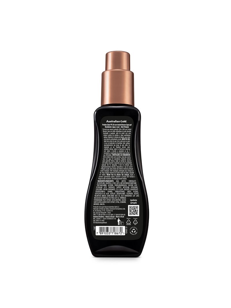 Protetor solar com bronzeador instantâneo que confere uma cor dourada ao mesmo tempo em que protege a pele. Sua textura em gel é resistência a água e possui rápida absorção. Sua fórmula contém ingredientes naturais que hidratam, iluminam e acalmam a pele.