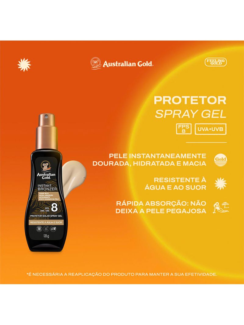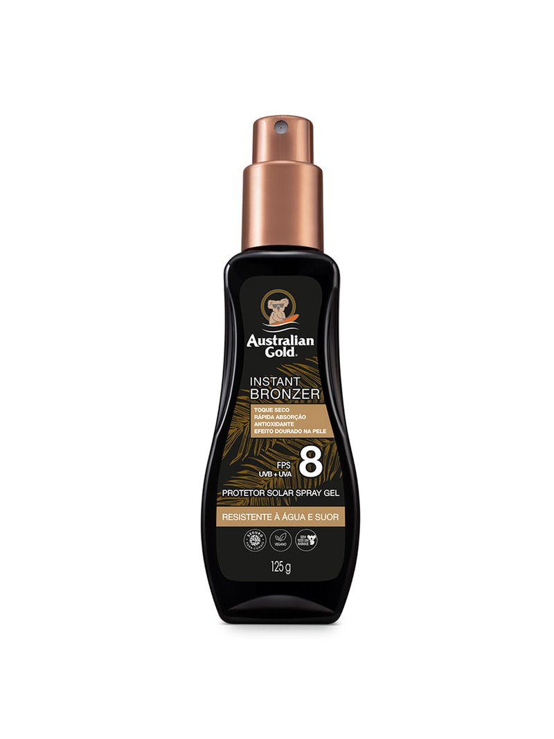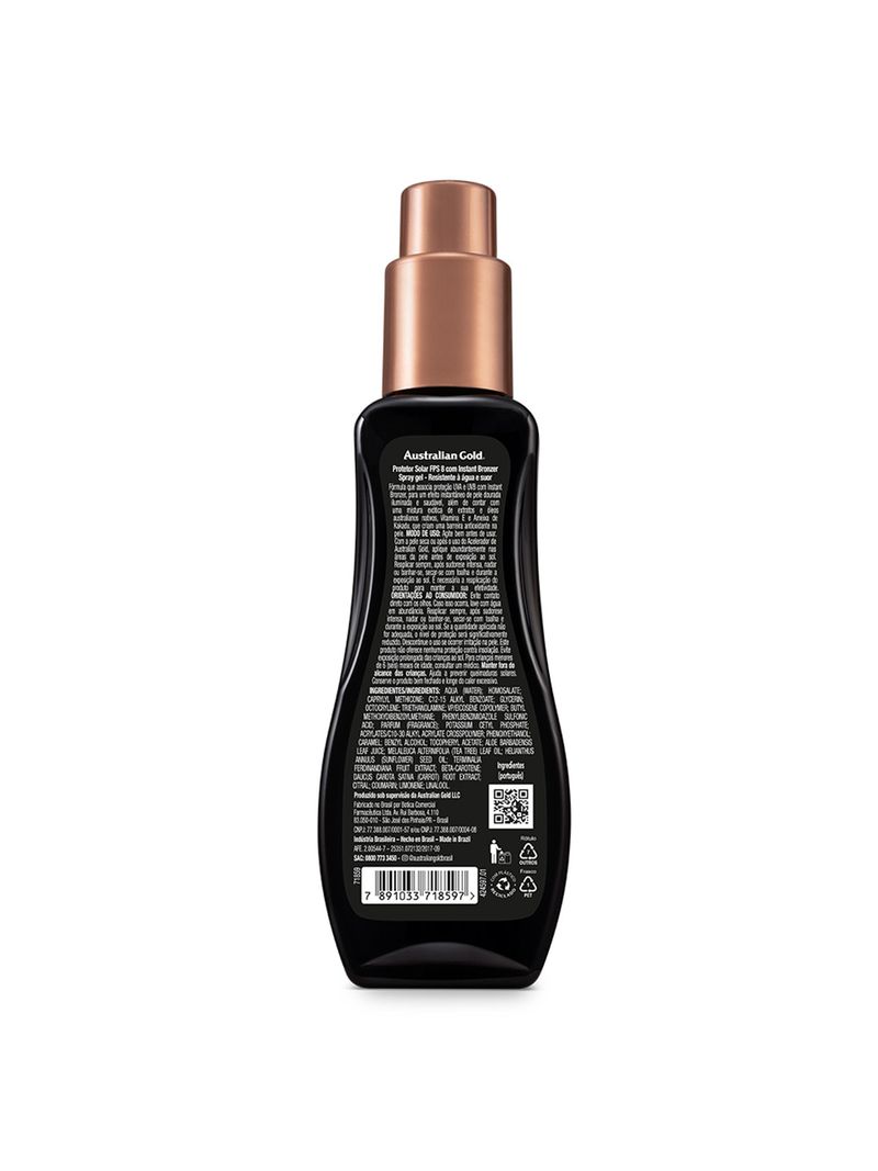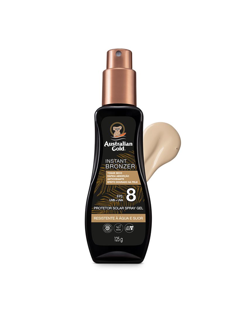 Protetor solar com bronzeador instantâneo que confere uma cor dourada ao mesmo tempo em que protege a pele. Sua textura em gel é resistência a água e possui rápida absorção. Sua fórmula contém ingredientes naturais que hidratam, iluminam e acalmam a pele.