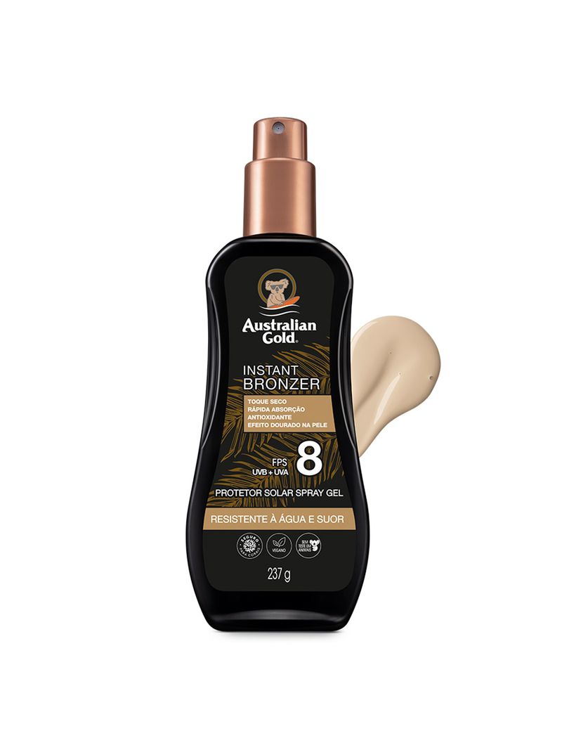 Protetor solar com bronzeador instantâneo que confere uma cor dourada ao mesmo tempo em que protege a pele. Sua textura em gel é resistência a água e possui rápida absorção. Sua fórmula contém ingredientes naturais que hidratam, iluminam e acalmam a pele.