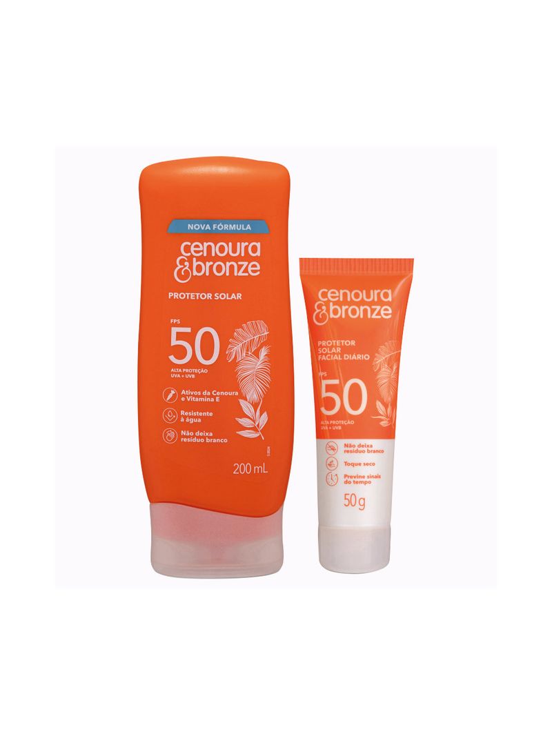 Protetor Solar Corporal Cenoura E Bronze 200ml + Facial Fps50 50gr