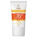 Proteção Multinível Australian Gold: tecnologia formada por uma combinação de filtros solares e ativos antioxidantes que proporcionam proteção fotoetável contra os raios UVA e UVB, ação antioxidante e antipoluição, que previnem o envelhecimento solar;