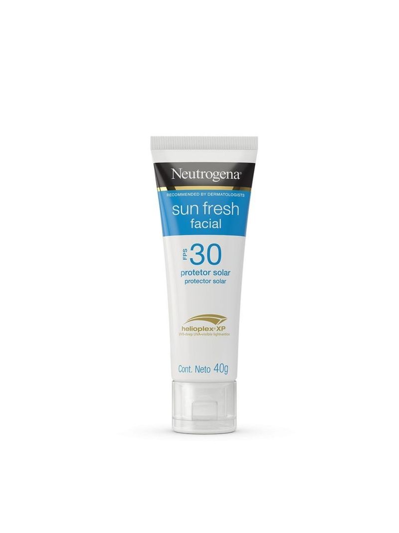 Protetor Solar Facial NEUTROGENA SUN FRESH® FPS 30, 40g possui textura ultraleve e hidratante que não derrete e oferece alta proteção contra os raios UVA, UVB e ajuda a proteger contra a luz visível com sua exclusiva tecnologia HELIOPLEX® XP. Com ativos ricos em propriedades hidratantes que deixam a pele macia, aveludada e preenchida e complexo antioxidante rejuvenescedor formado por Niacinamida, ativo clareador de sinais causados pelo sol, Feverfew e Vitamina C, poderosos antioxidantes. Melhora a firmeza e elasticidade da pele e possui textura não oleosa. Dermatologicamente testado e adequado para peles sensíveis.