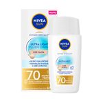 Nivea Sun UV Face Specialist Ultra Light Fluido Diário FPS 70 Cor Clara é um protetor solar facial com muito alta proteção, desenvolvido para o uso diário. Sua fórmula ultraleve com ácido hialurônico hidrata imediatamente, uniformiza o tom da pele e proporciona um acabamento invisível.