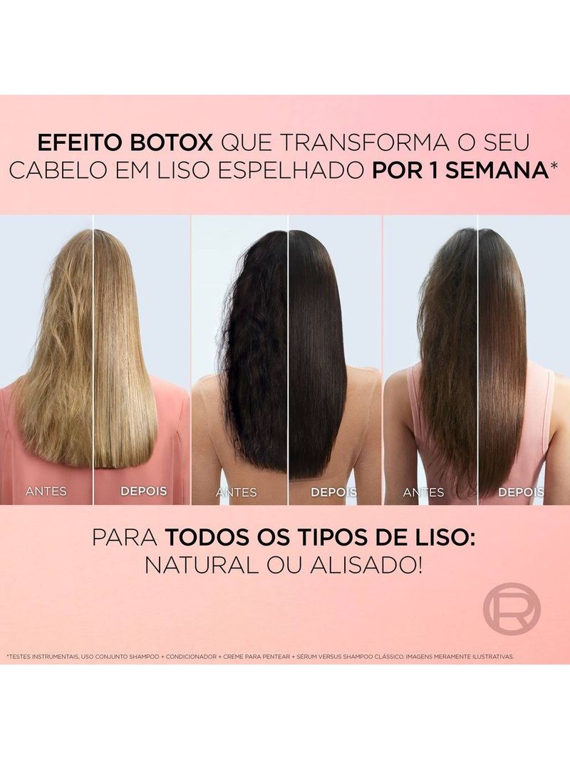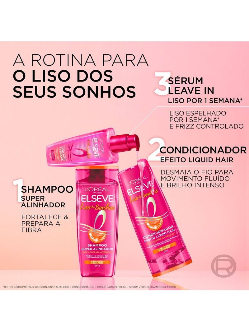 O Shampoo Super Alinhador Liso dos Sonhos tem em sua fórmula queratina vegetal líquida e manteiga de cacau, tratando o cabelo da raiz até as pontas