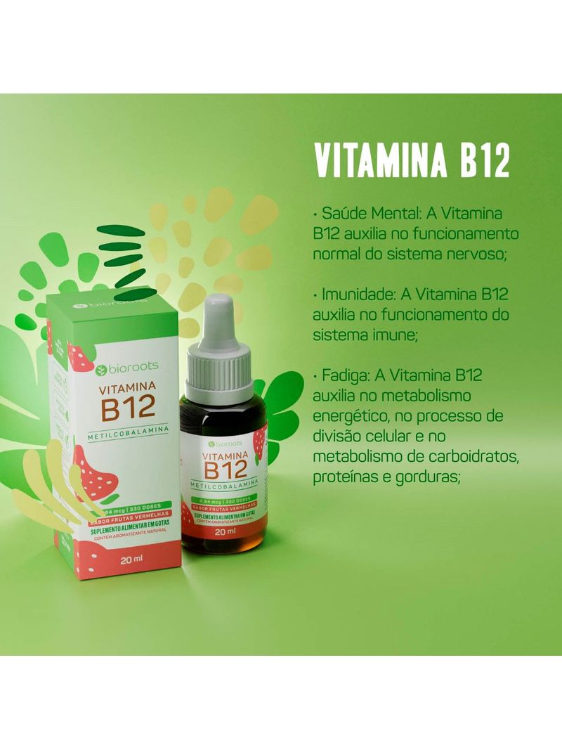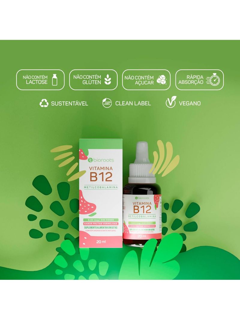 A Vitamina B12 da Bioroots é um suplemento alimentar em gotas de Vitamina B12 em forma de Metilcobalamina, a fonte mais indicada por profissionais de saúde.