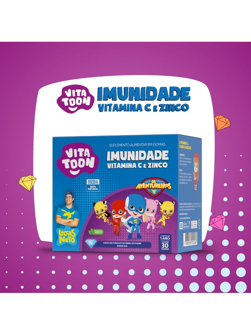 VITAMINA C + ZINCO - VITATOON IMUNIDADE 2G SABOR UVA 30 GOMAS